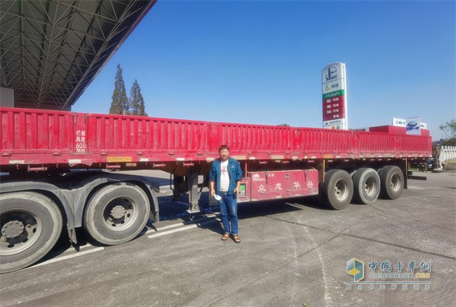 有句俗話是“無巧不成書”,然后這樣的巧合竟然就讓華興車輛用戶回訪團隊遇上了。 華興車輛用戶回訪團隊走訪市場,在浙江臺州某加油站加油的途中,正好遇上了開著華興掛車前來加油的王師傅。 得知碰上華興車輛的團隊,王師傅很快打開了話匣子。 選擇華興主要是看對眼了 王師傅使用的是華興6.1噸的三軸欄板半掛車
